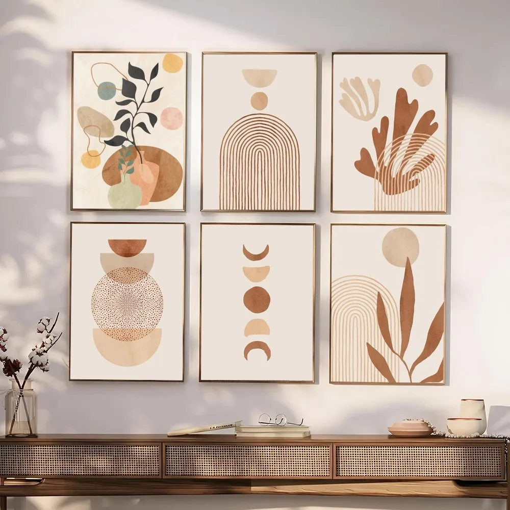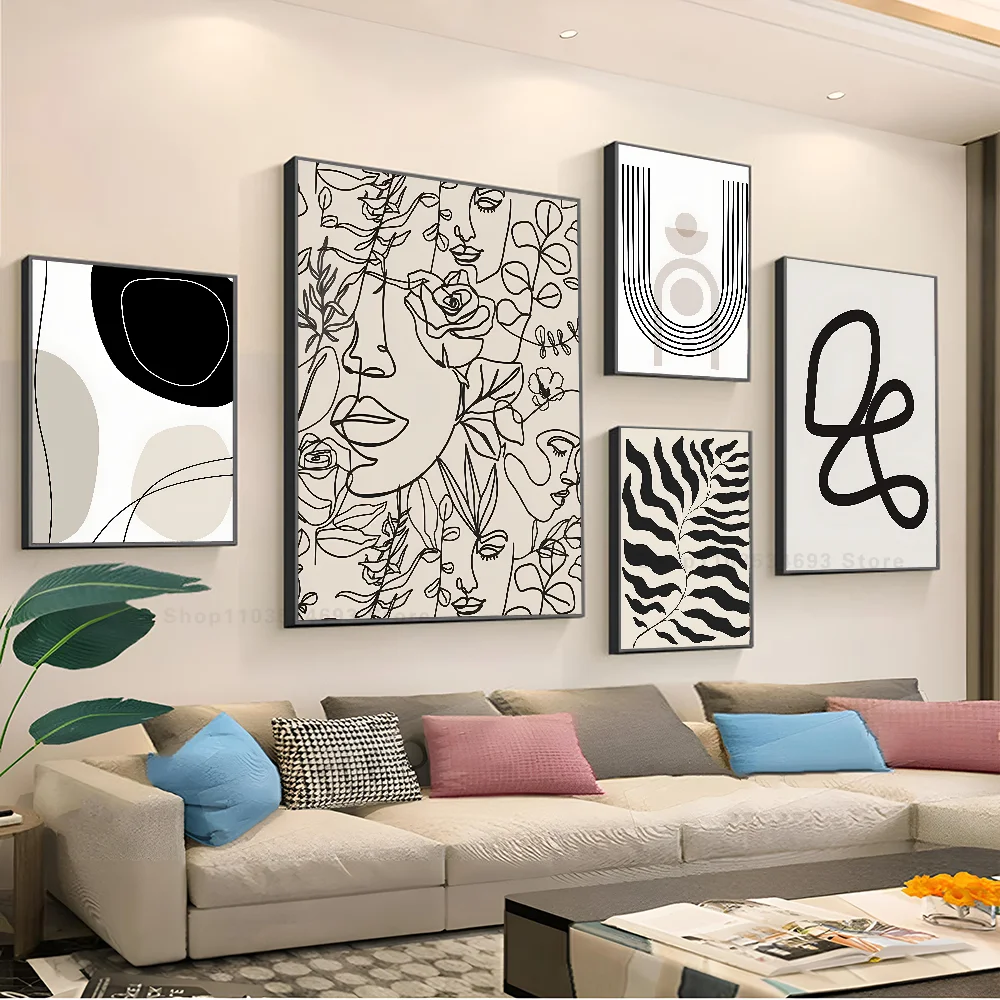1PC Boho Matisse Coral Lines Beige Poster Self-adhesive Art Waterproof Paper Sticker Coffee House Bar Room Wall Decor