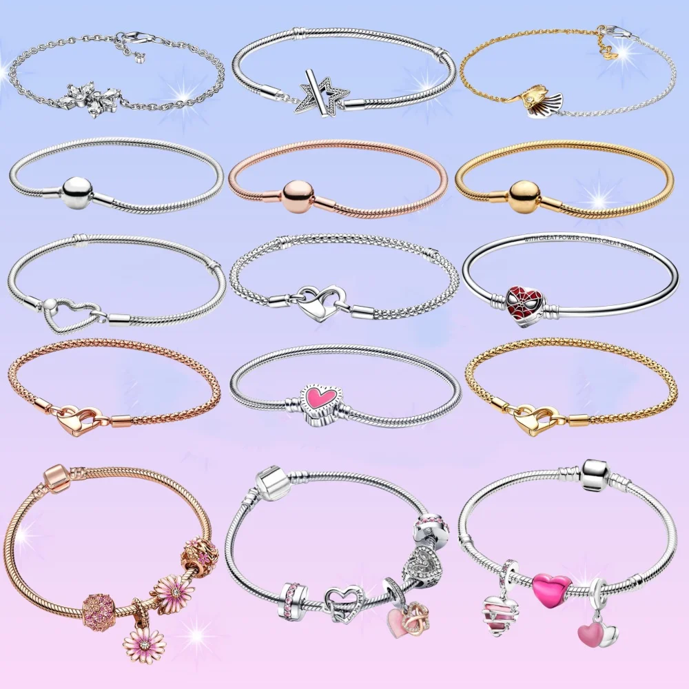 Hot Selling Pandora 925 Silver Basic Style Classic Heart Closure Snake Chain Bracelet Elegant Luxury Jewelry For Women