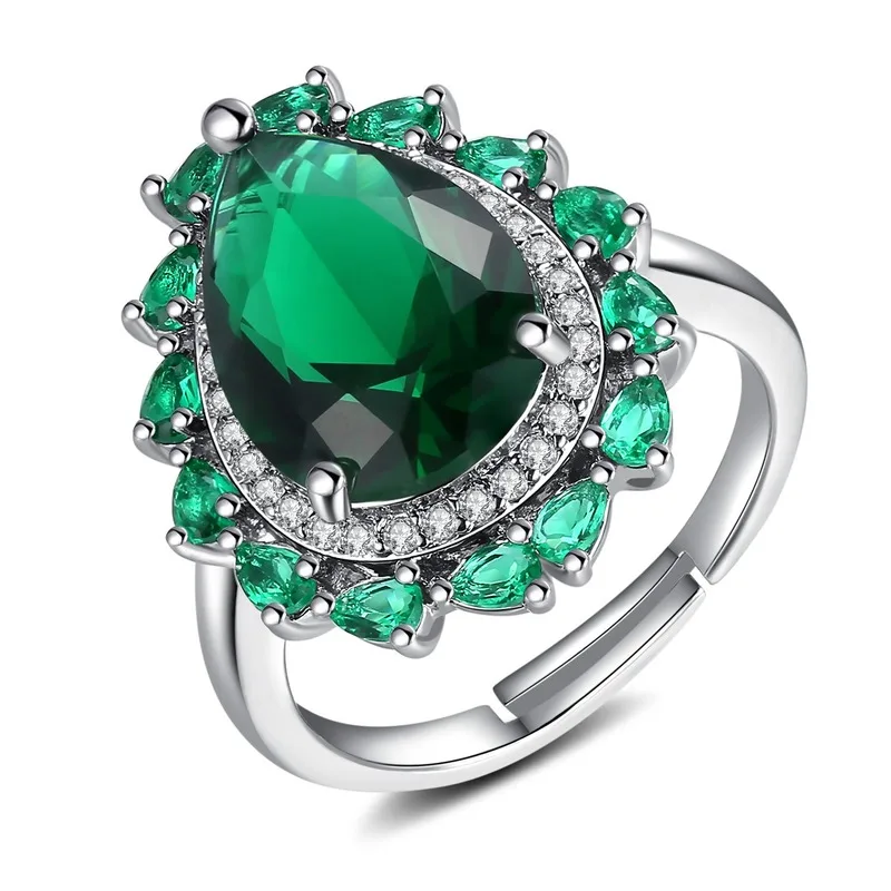 Big Green Waterdrop-shaped Crystal Zircon Rings for Women Fashion Elegant Valentines Day Gift Wedding Engagement Jewelry R79