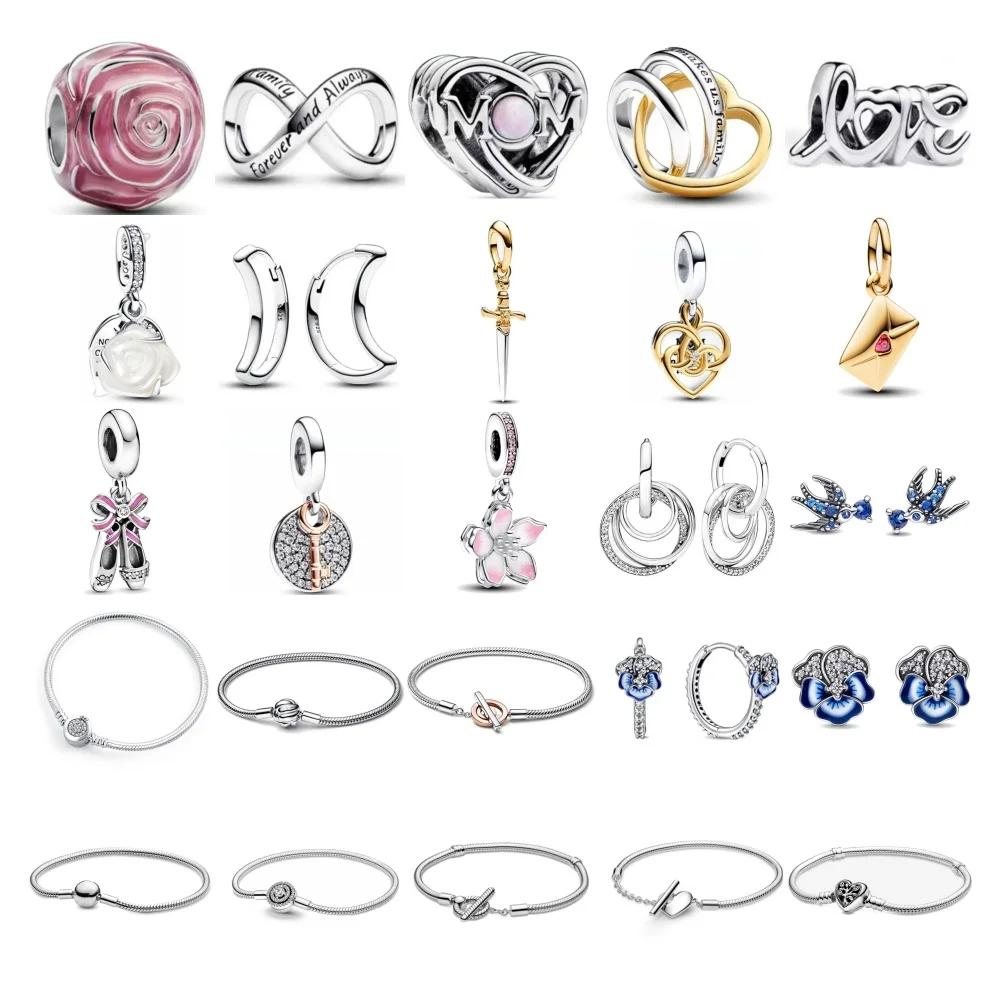 New Pink Flower Moon Love Diy Clip Bead Fit European Sterling Silver Plated 925 Bracelet Necklace Accessories Jewelry Spacer