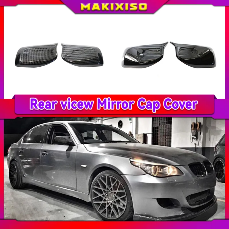 Carbon Fiber Look Black Rearview Side Mirror cover Caps for BMW 5 Series E60 E61 E63 E64 2004-2008 520i 525i 528i 528xi 530i