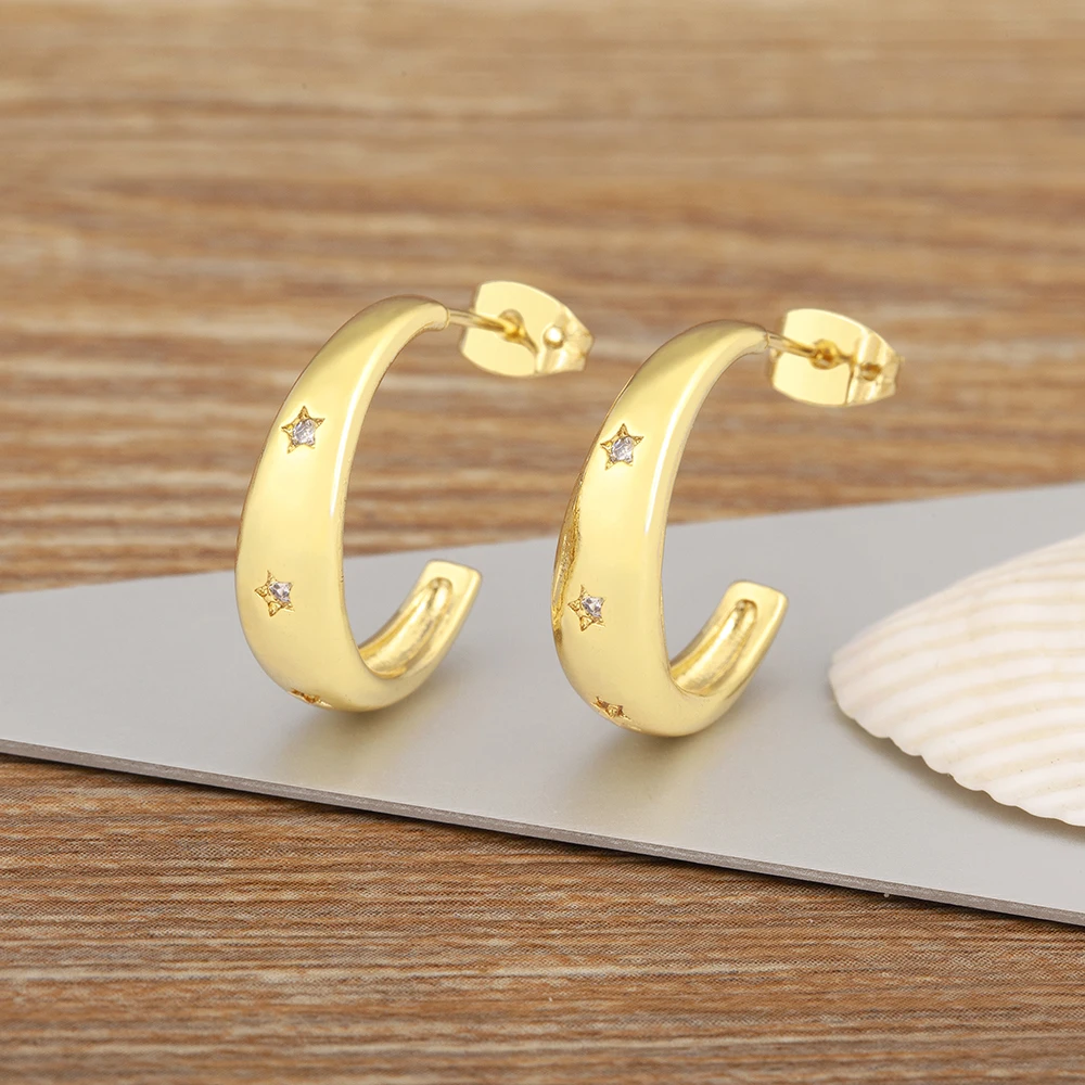 Nidin Hot Sale Initial A-Z Letters Mini Small Hoop Earrings Gold Color Zircon Jewelry Alphabet Fashion Christmas New Year Gift