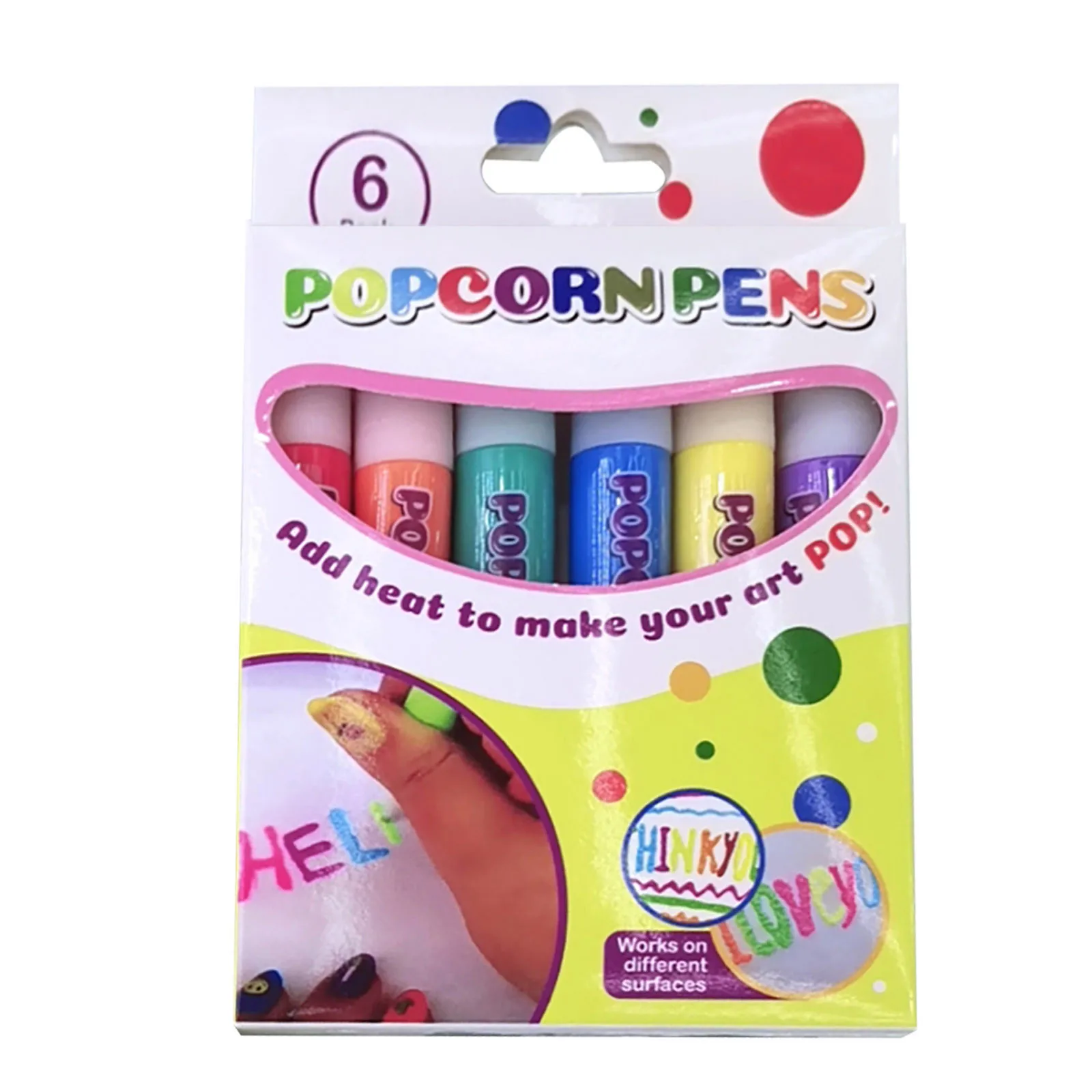 6pcs DIY Bubble Popcorn Drawing Pens 3D Magic Puffy Effect Drawing Pens for Kids 3D Cards Decorating