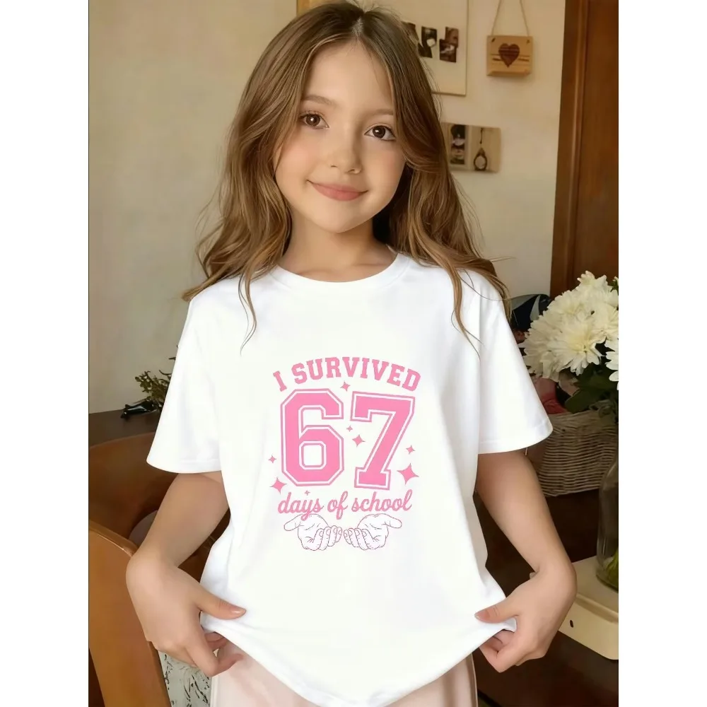 Children T-shirt Summer New 67 Cute Dice Pattern Peinted Boys Girls Short Sleeved Shirts Cartoon Fashion Kids Clothes Tees Tops