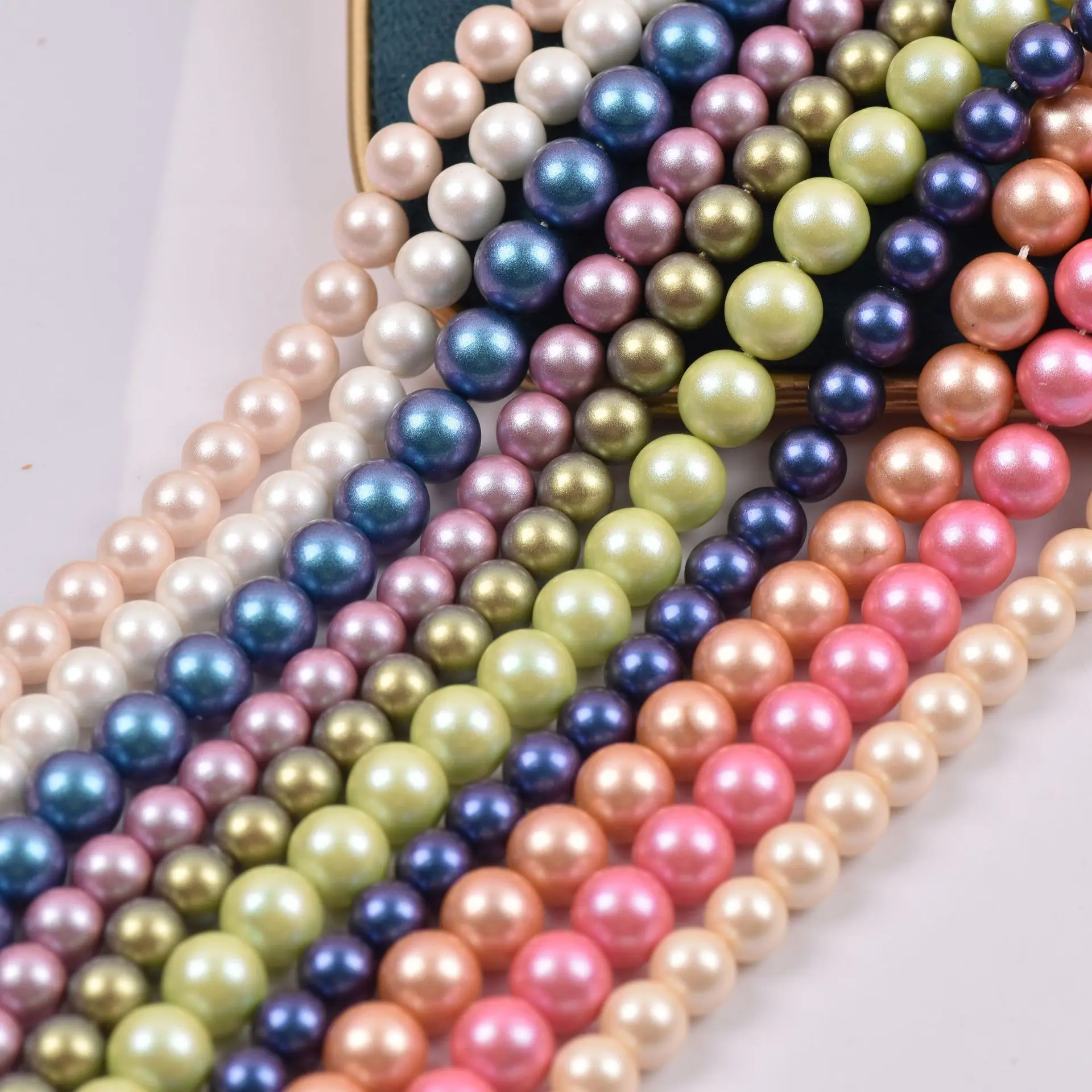 Glass Bead Iridescent Matte Imitation Pearl about 4-12mm Semi-finished DIY Jewelry Necklace Accessories Wholesale