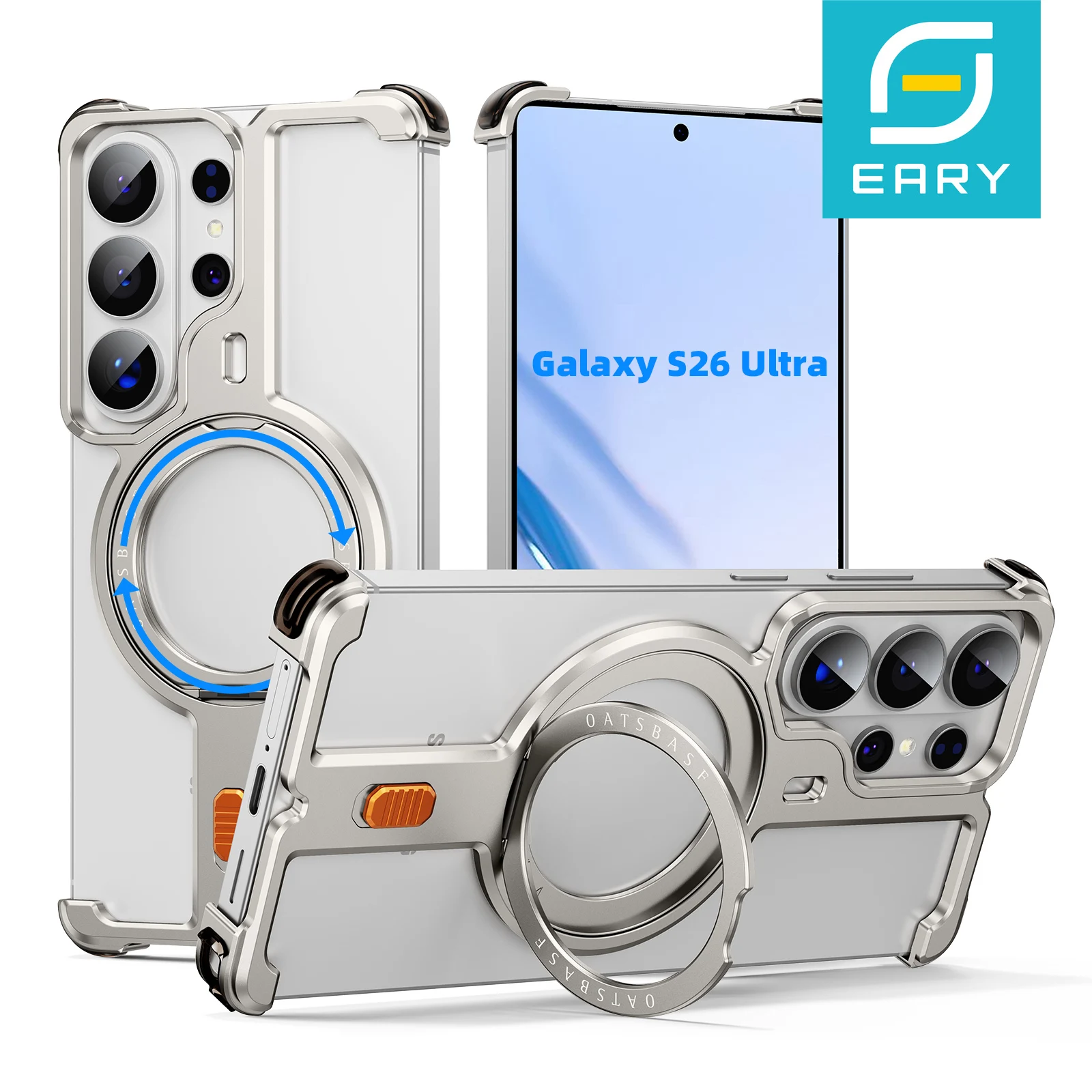 Eary for Samsung Galaxy S26 Ultra Phone Case Metal With 360Rotating Magnetic Stand Frameless Cover Screen Protection Shockproof
